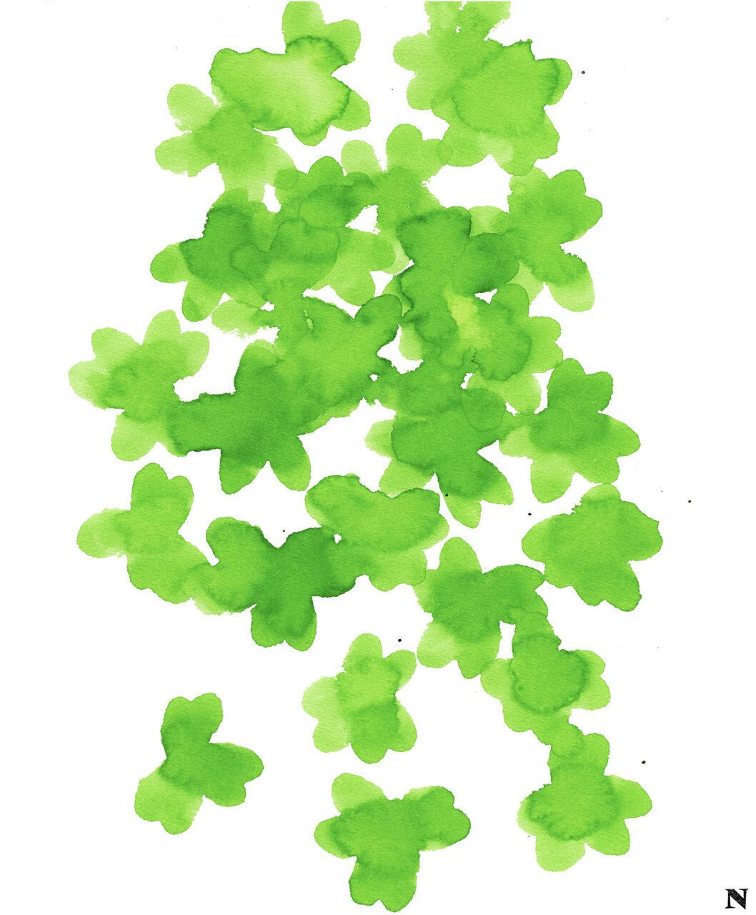 2024年の新作。かつて描いたクローバーをインクジェットプリントで外注。