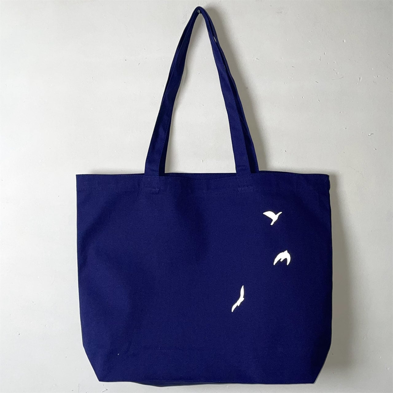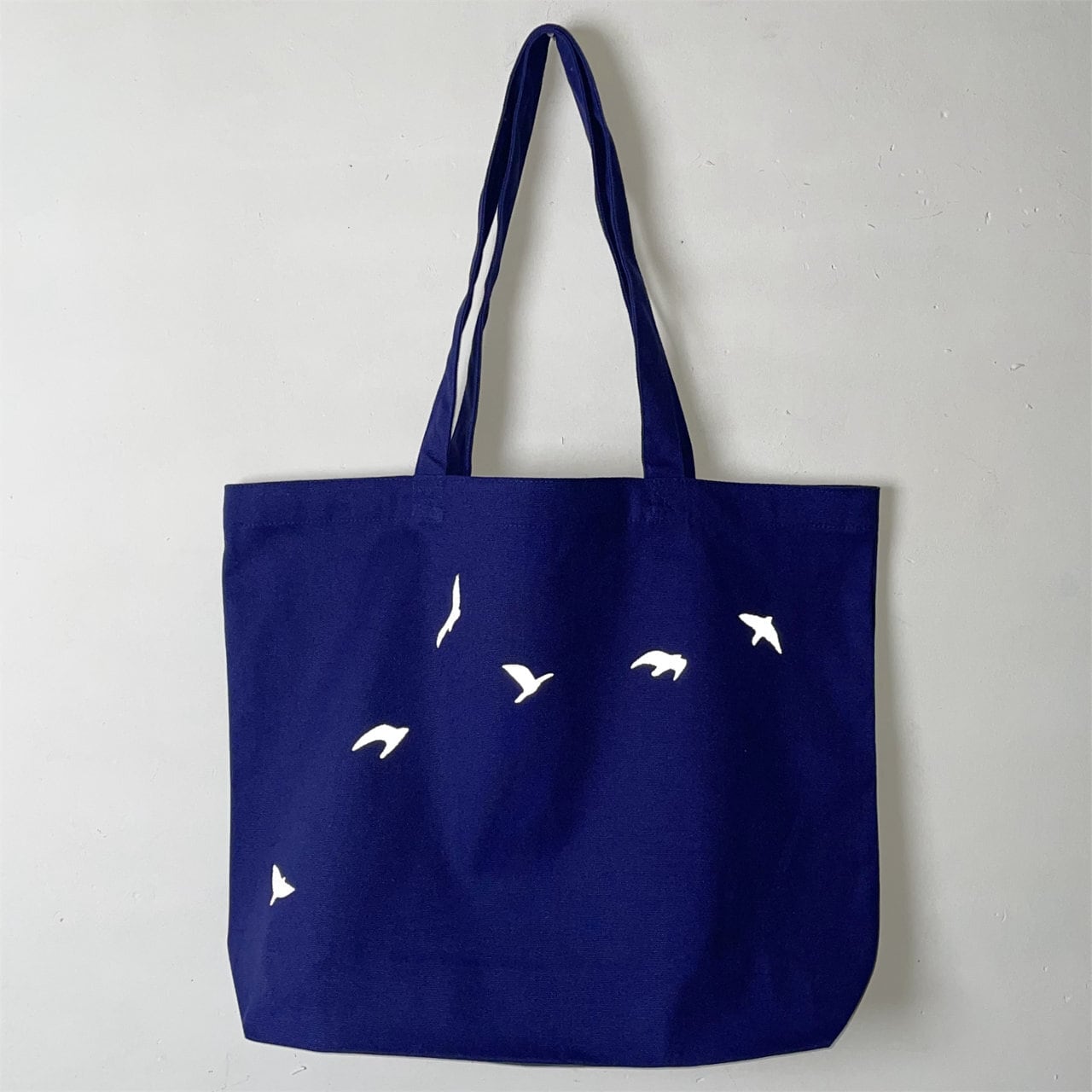 BIRDS_gold Tシャツの版使ってbagにシルバーインクでシルクスクリーンでプリント。