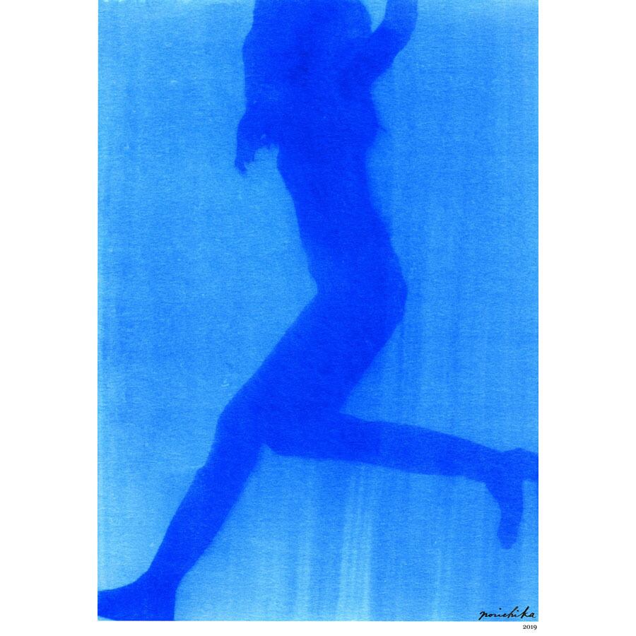 2019年の新作。自作の絵 Blue をインクジェットプリントで外注。綿100%