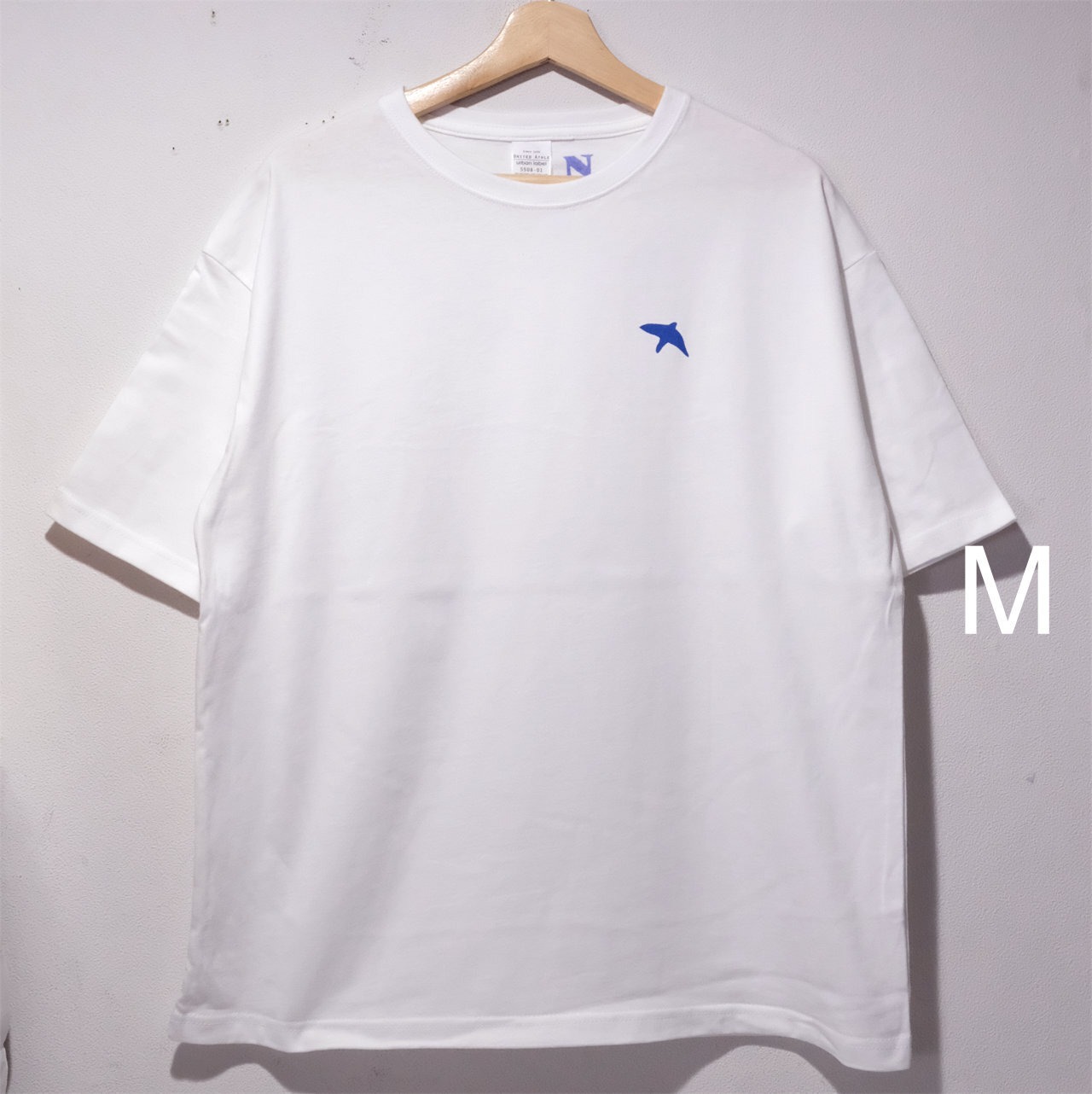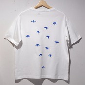 前面に1羽、背中に12羽の鳥を反射する青インクでシルクスクリーンプリント。