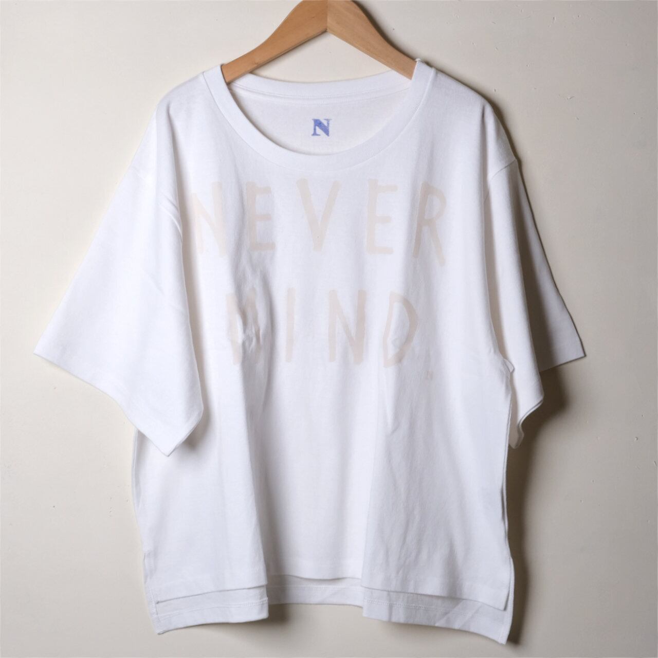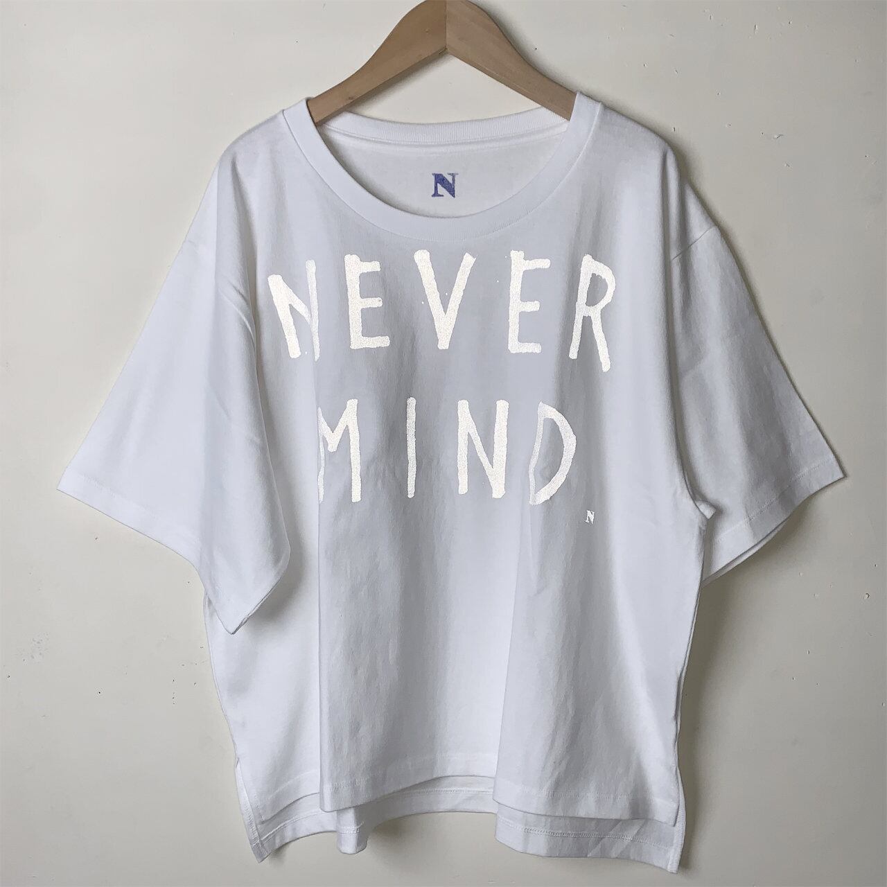 NEVER MINDを レディース オーバーTシャツ にプリントしました。